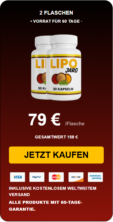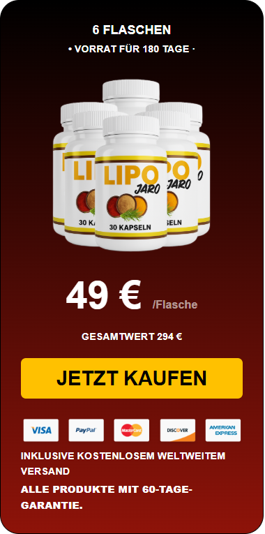 Nur jetzt: LipoJaro mit 38 % Rabatt + kostenlosem Versand sichern! Dieses streng limitierte Angebot gilt nur für kurze Zeit und endet bald.
